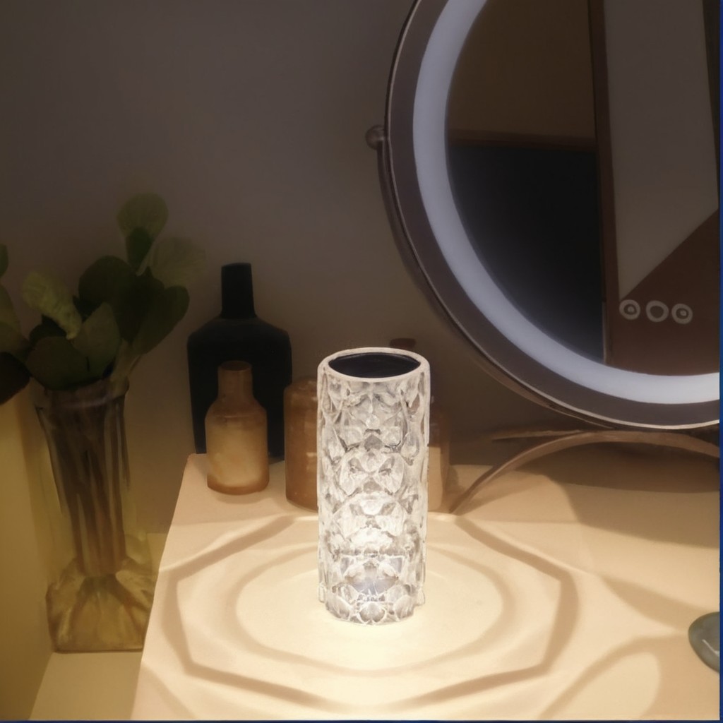 Rose Crystal Diamond Table Lamp :- Turn on this table lamp, the 3D visual effect is like a rose blooming on the table, the square cut refracts the light and shadow like a diamond, the rose shape reflects the shadow, a charming Showing light and shadow effects. This crystal table lamp is simple, luxurious, comfortable and romantic. Suitable for family, balcony, party, bar, table decoration.
